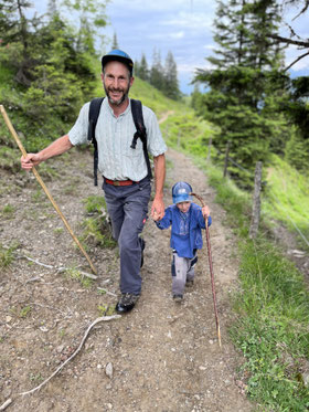 Auch unsere Söhne Flurin und Jöri und Andres sind schon gut und gerne eine Hilfe auf dem Hof und hantieren mit Heugabel und Mistschorrer wie selbstverständlich.